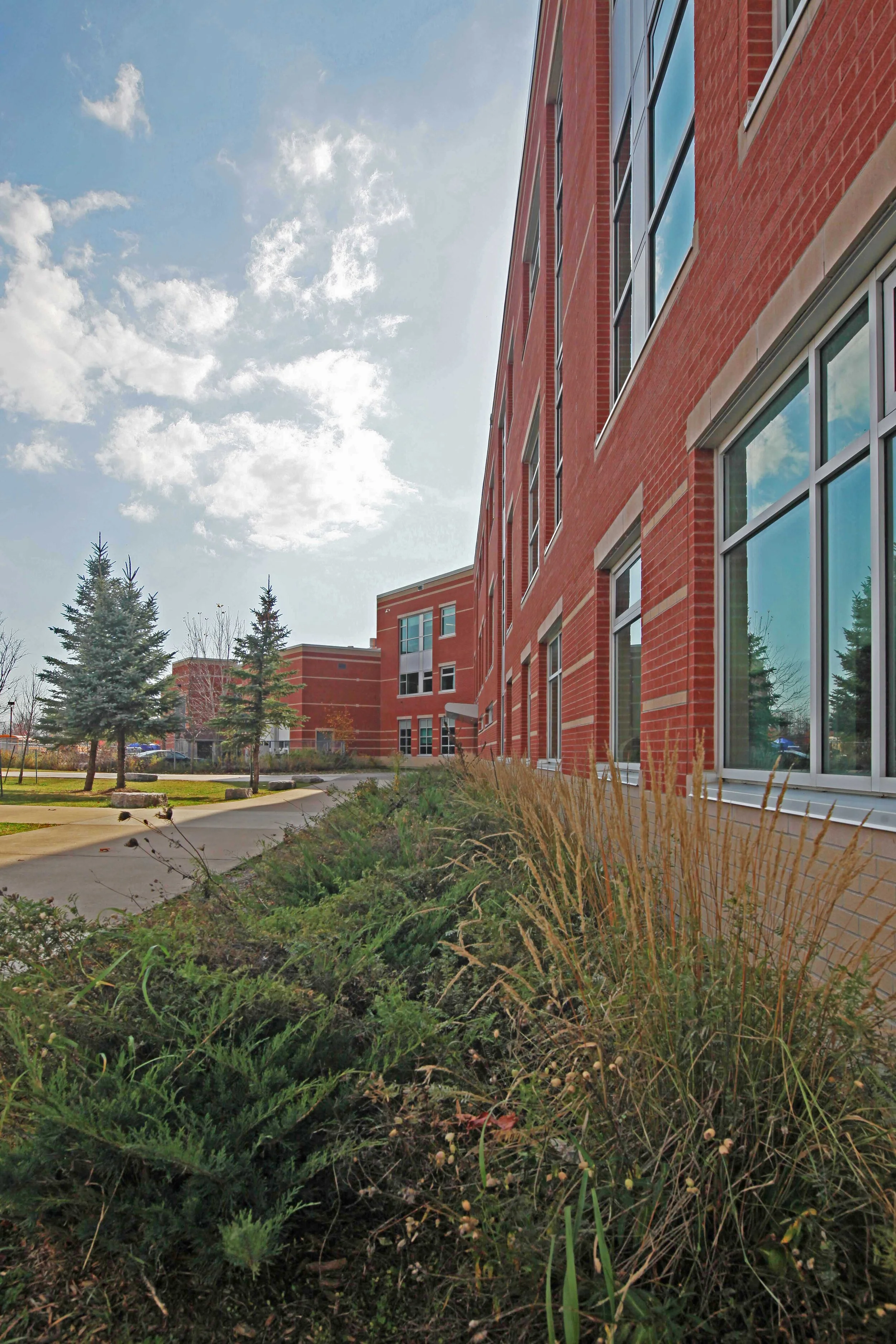 The school has low consumption plumbing systems and an energy efficient closed loop heat pump system for heating and cooling. Lighting systems throughout the building are high efficient with demand controls. The design meets all the criteria of the High Performance New Construction Program from the Ontario Power Authority (OPA).